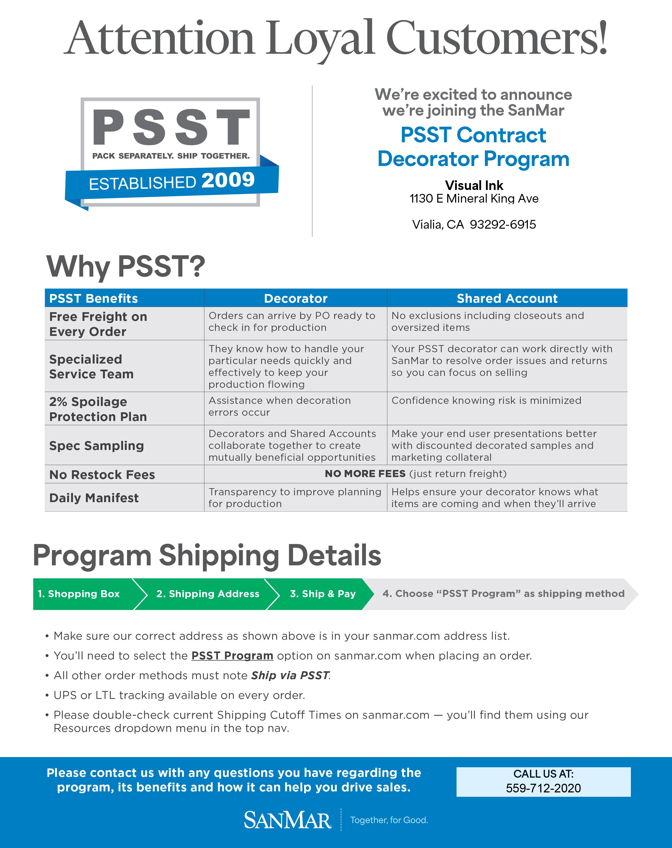 All PSST benefits are triggered when an order is shipped via PSST with a ship to address matching exactly as shown below. Future updates to the poral will allow for automatic PSST ordering. We will release more information in the weeks to come.