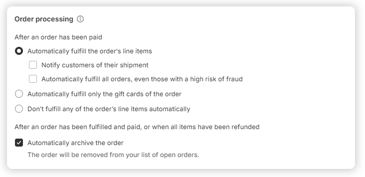 When setting up your Shopify store, you have the option to choose between automatic or manual fulfillment for your orders. This tutorial will guide you through configuring both options to suit your store's needs.