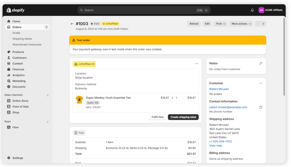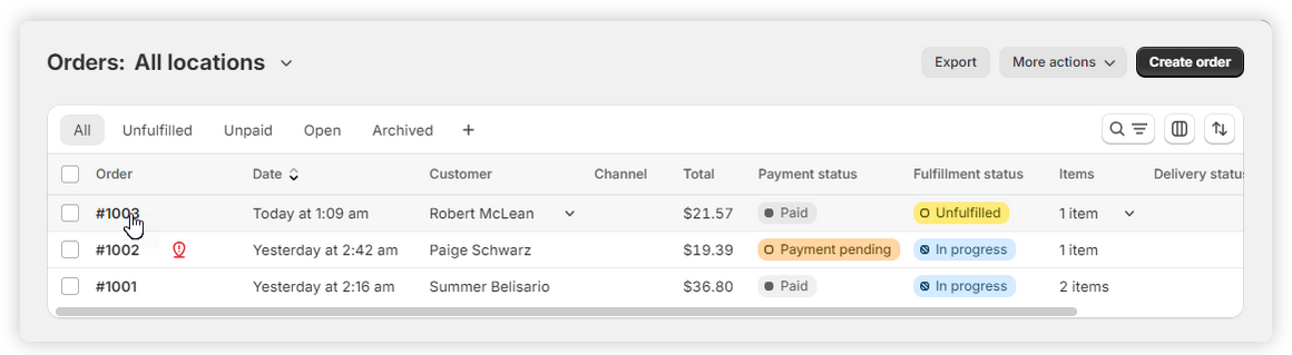 2. From Shopify Admin dashboard, select Orders from the left-hand menu.