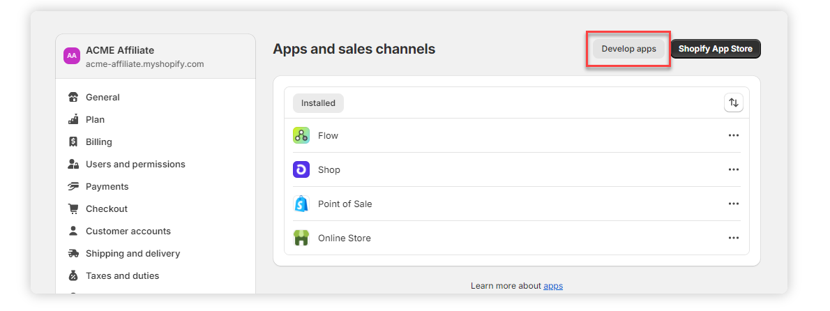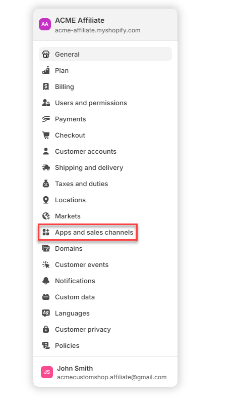 3. Select Apps and sales channels
