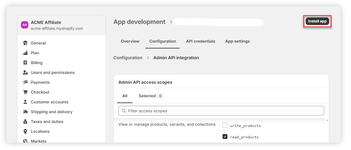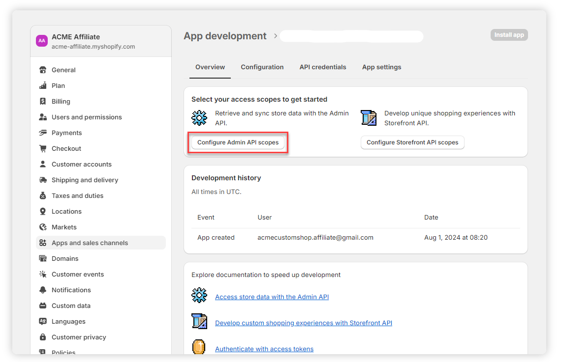10. Click on Configure Admin API Scopes