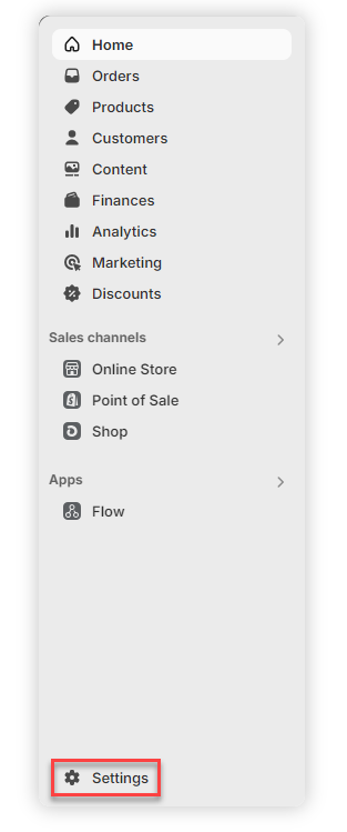 2. Click on Settings in the bottom-left corner of the admin dashboard.